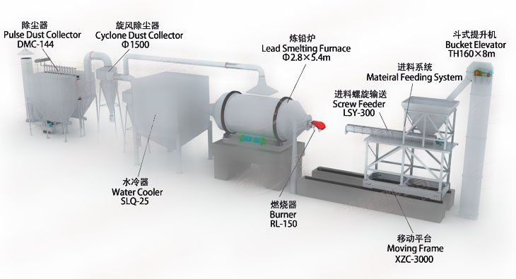 煉鉛爐還可以處理電池廢料以及高爐廢料、精煉浮渣、袋式粉末等;運行時噪音低,工作環境好。