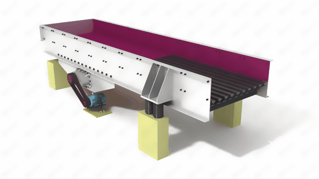 料槽配置單層篦條,可以對物料進(jìn)行簡單預(yù)篩分,能有效去除原料中的細(xì)料和雜質(zhì),柵條間隙可調(diào),可防止物料堵塞。